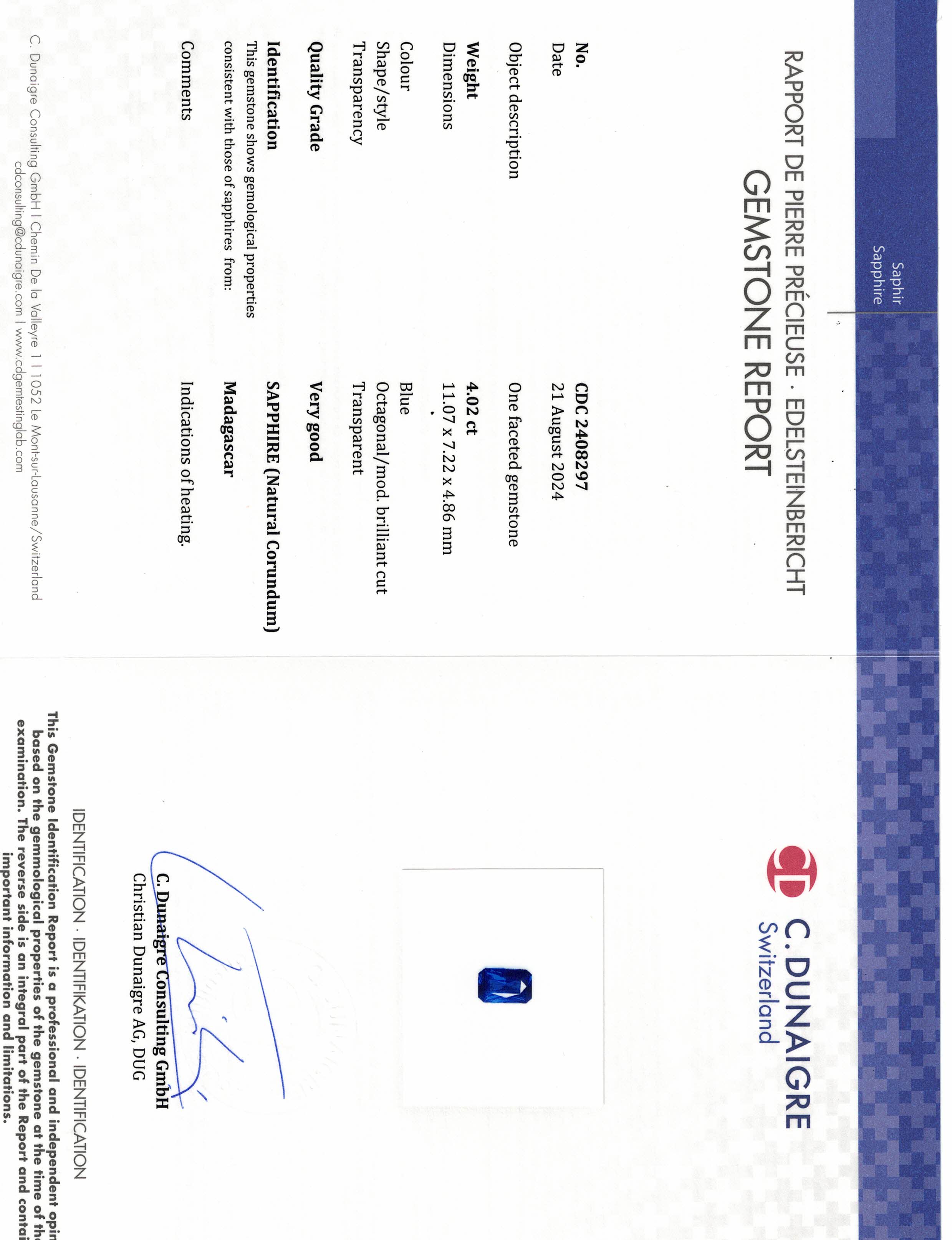Blue Radiant Sapphire Madagascar H 11.05X7.2X4.9