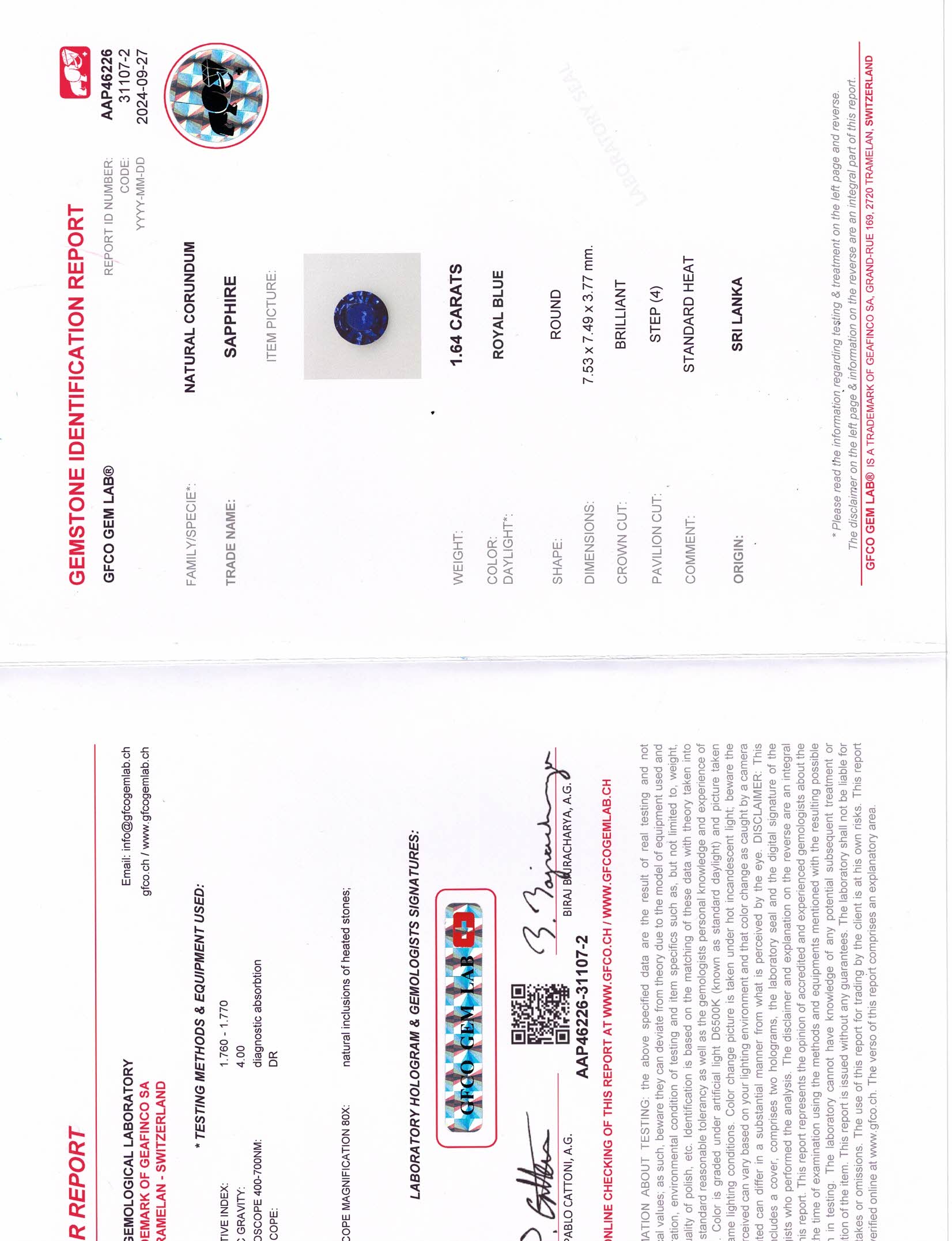 Blue Round Sapphire Sri Lanka H 7.3X7.3X4.0