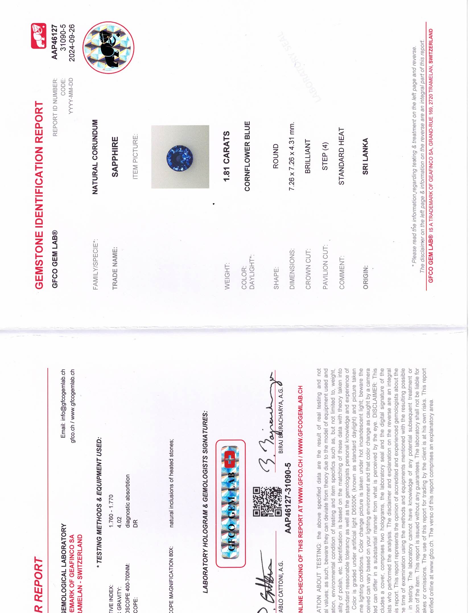 Blue Round Sapphire Sri Lanka H 7.2X7.2X4.3