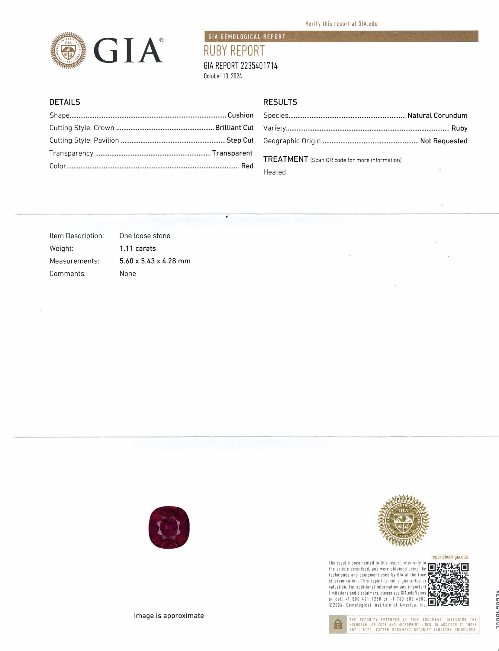 Red Cushion Ruby Mozambique H 5.6X5.4X4.2