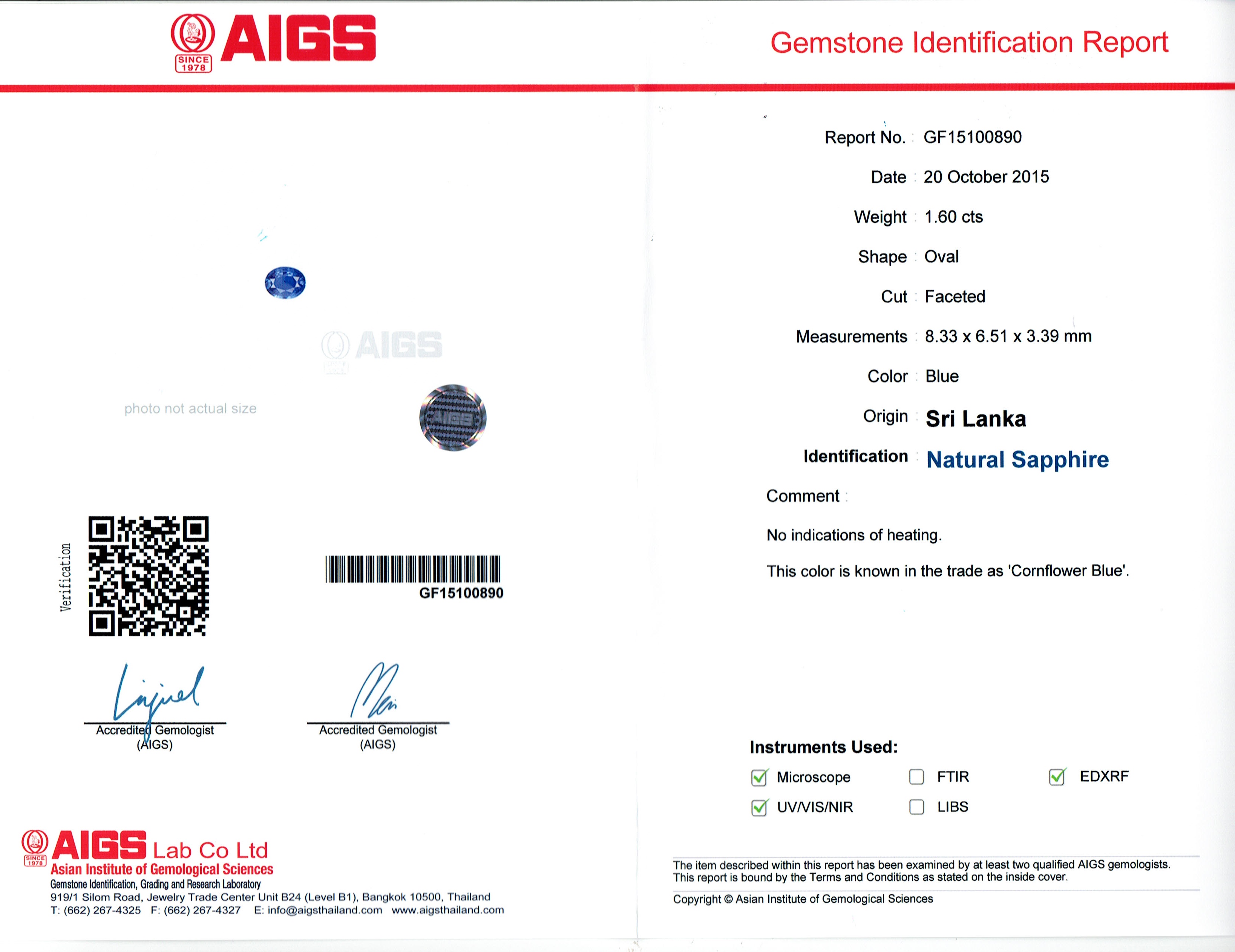 Blue Oval Sapphire Sri Lanka N 8.3X6.5X3.4